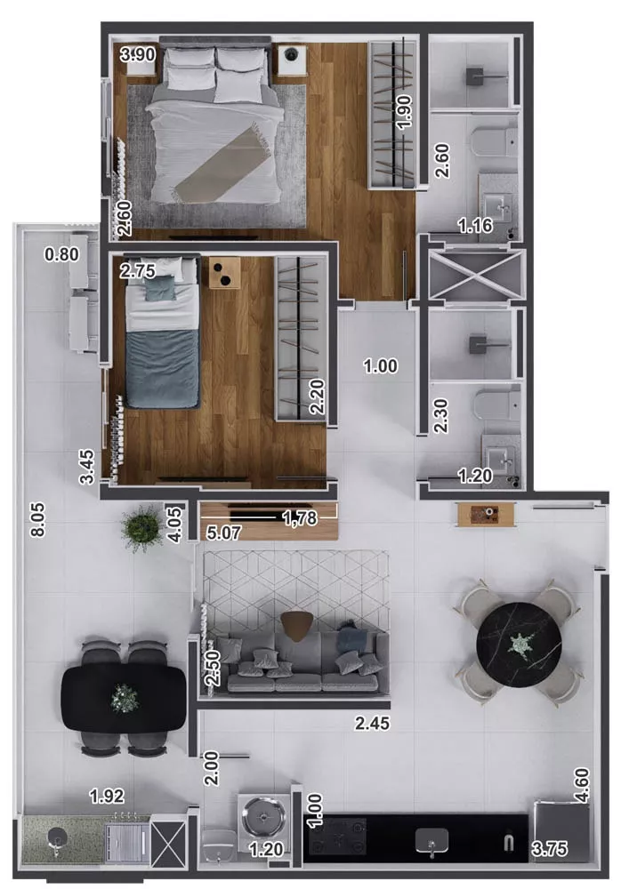 Comprando na planta, você garante além da melhora na sua qualidade de vida, um crescimento exponencial do seu patrimônio, podendo utilizar seu imóvel como uma excelente fonte de renda e investimento! Confira abaixo, uma das opções de planta, no caso a mais acessível: